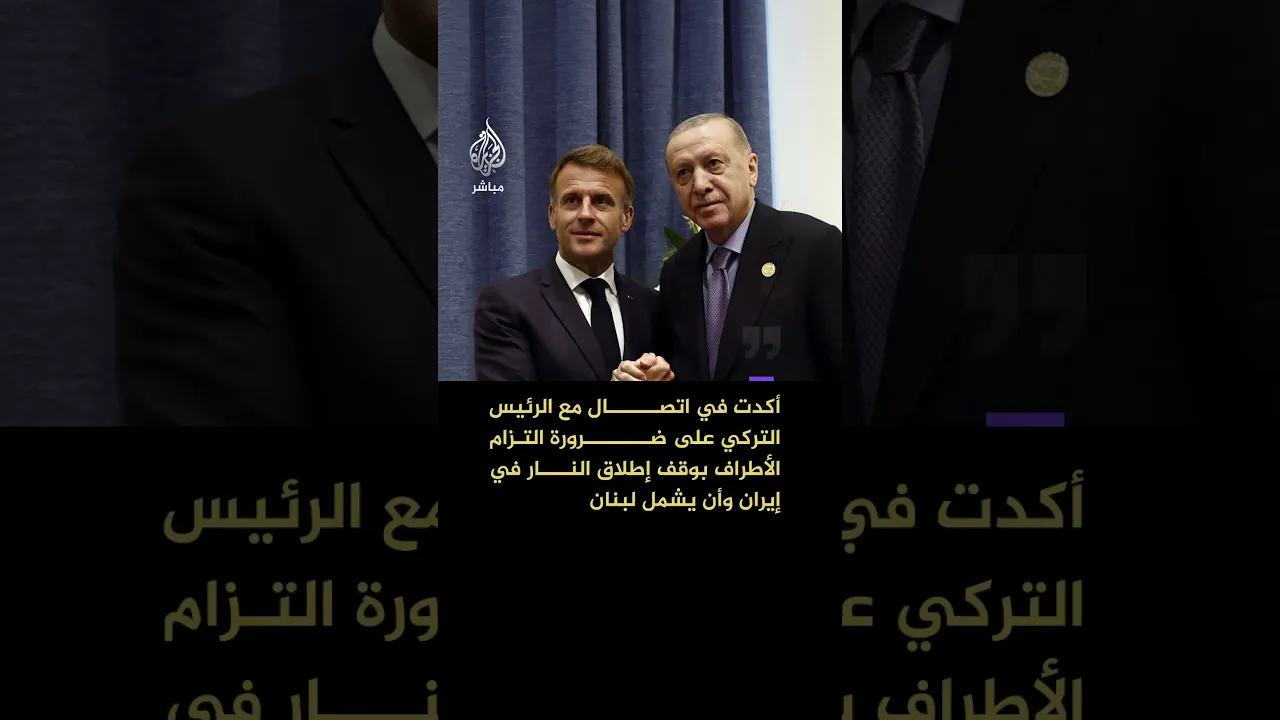 الرئيس الفرنسي: أكدت في اتصال مع الرئيس التركي على ضرورة التزام الأطراف بوقف إطلاق النار في إيران