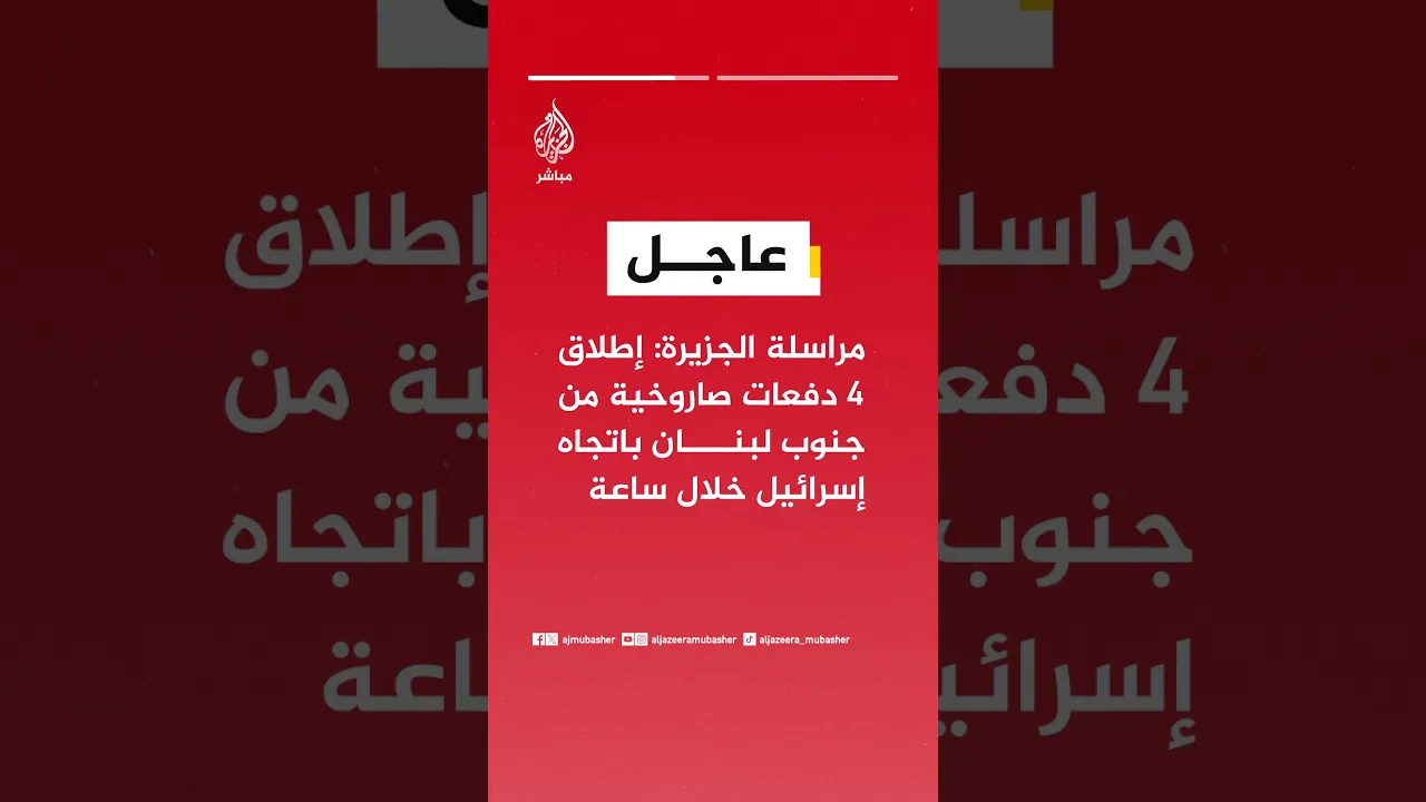 عاجل | مراسلة الجزيرة: إطلاق 4 دفعات صاروخية من جنوب لبنان باتجاه إسرائيل خلال ساعة