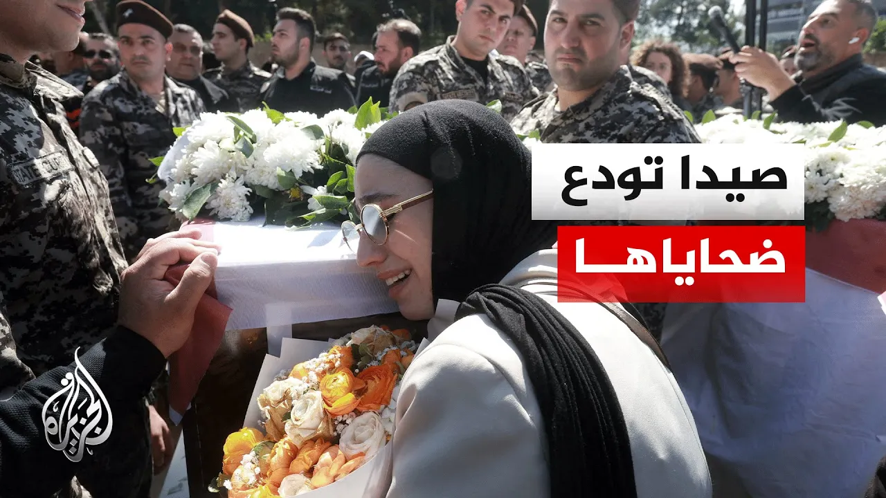 أقيمت في مدينة صيدا جنوبي لبنان مراسم تشييع 13 عنصرا من جهاز أمن الدولة اللبناني كانوا قد قضوا في غارات إسرائيلية على مدينة النبطية. وحضر مراسم التشييع مسؤولون في الأجهزة الأمنية اللبنانية وعائلات الضحايا
