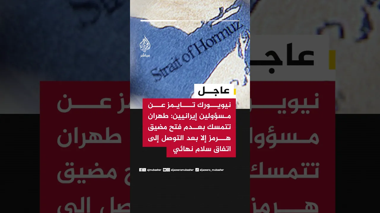 عاجل | نيويورك تايمز عن مسؤولين إيرانيين: طهران تتمسك بعدم فتح مضيق هرمز إلا بعد التوصل إلى اتفاق سلام نهائي