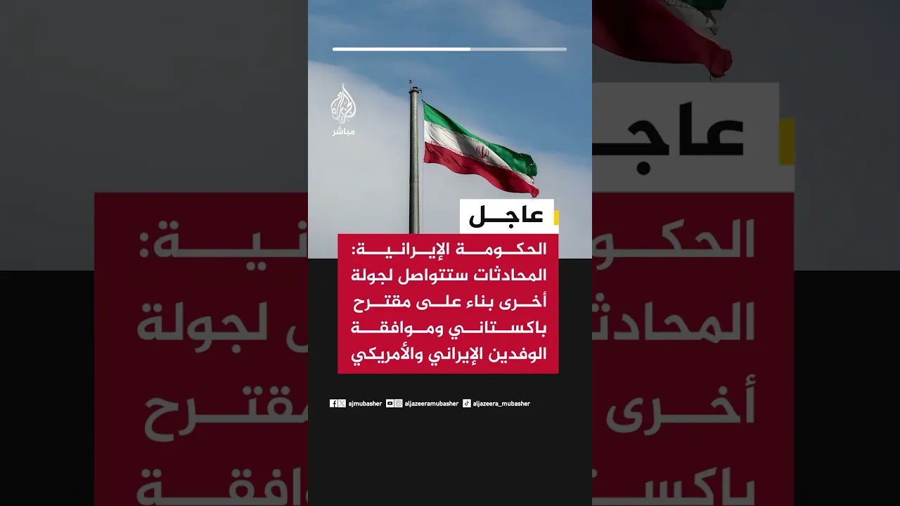 عاجل | الحكومة الإيرانية: المحادثات ستتواصل لجولة أخرى بناء على مقترح باكستاني وموافقة الوفدين الإيراني والأمريكي