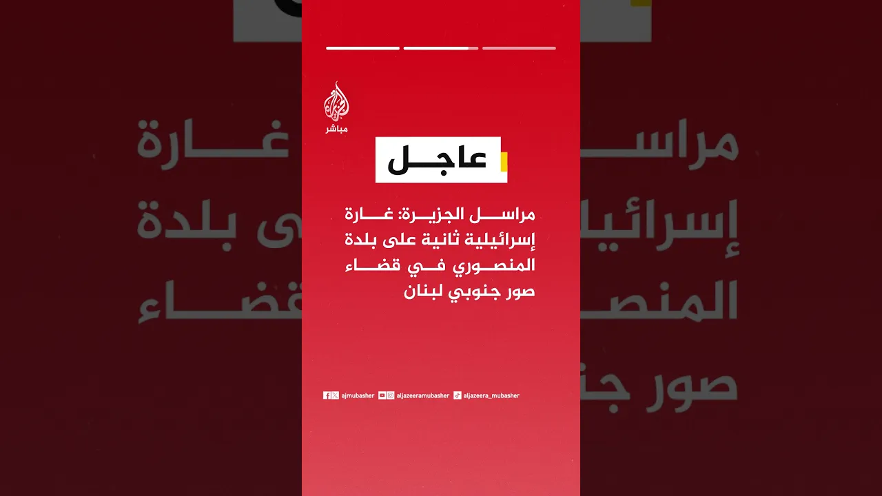 عاجل | وكالة الأنباء اللبنانية: غارات إسرائيلية على بلدات عدة في قضاء بنت جبيل جنوبي البلاد
