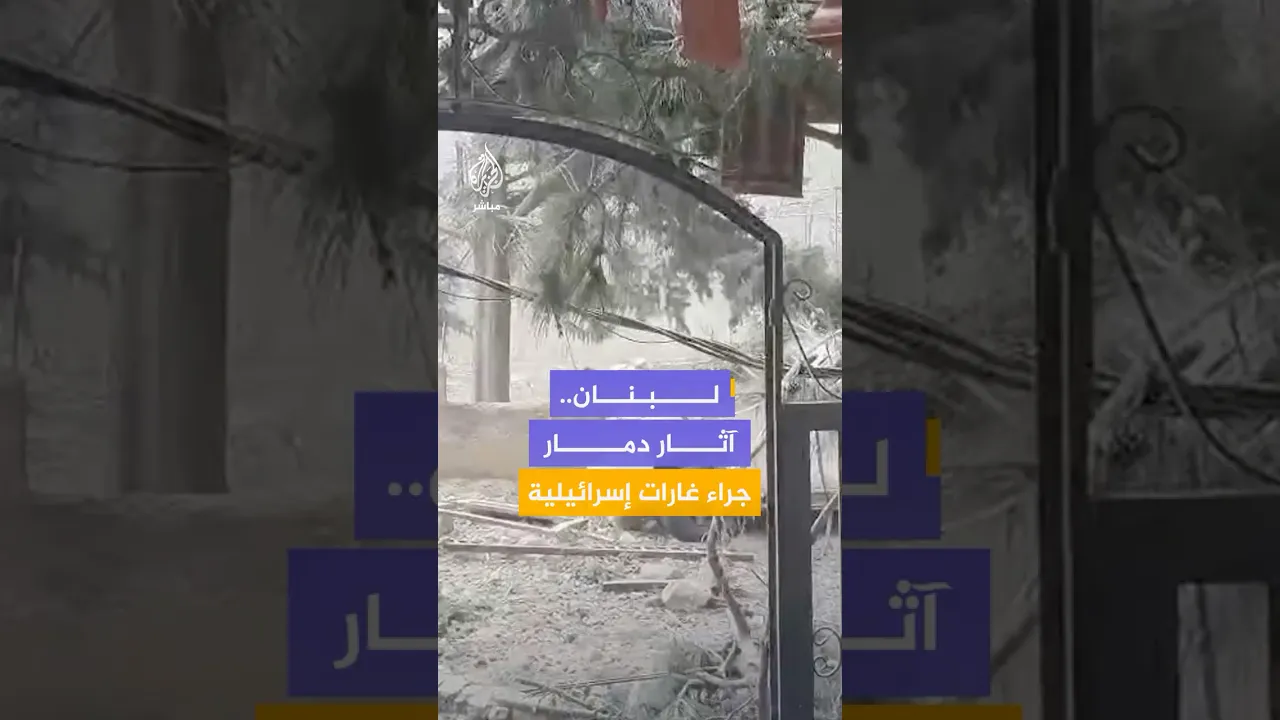 آثار دمار في منزل ببلدة مشغرة شرقي لبنان إثر غارتين إسرائيليتين استهدفتا البلدة، وأضرار جراء غارة أخرى على مبنى في النبطية الفوقا جنوبي البلاد