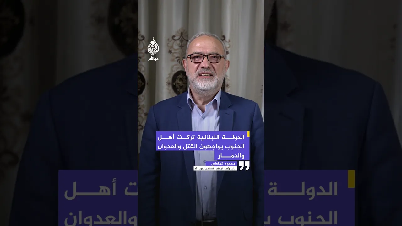 نائب رئيس المجلس السياسي لحزب الله للجزيرة مباشر: الدولة اللبنانية تركت أهل الجنوب يواجهون القتل والعدوان والدمار