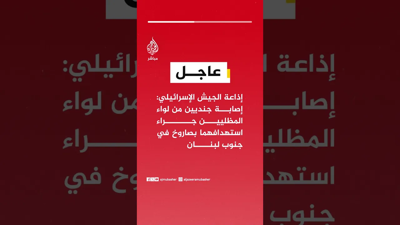 عاجل | إذاعة الجيش الإسرائيلي: إصابة جنديين من لواء المظليين جراء استهدافهما بصاروخ في جنوب لبنان