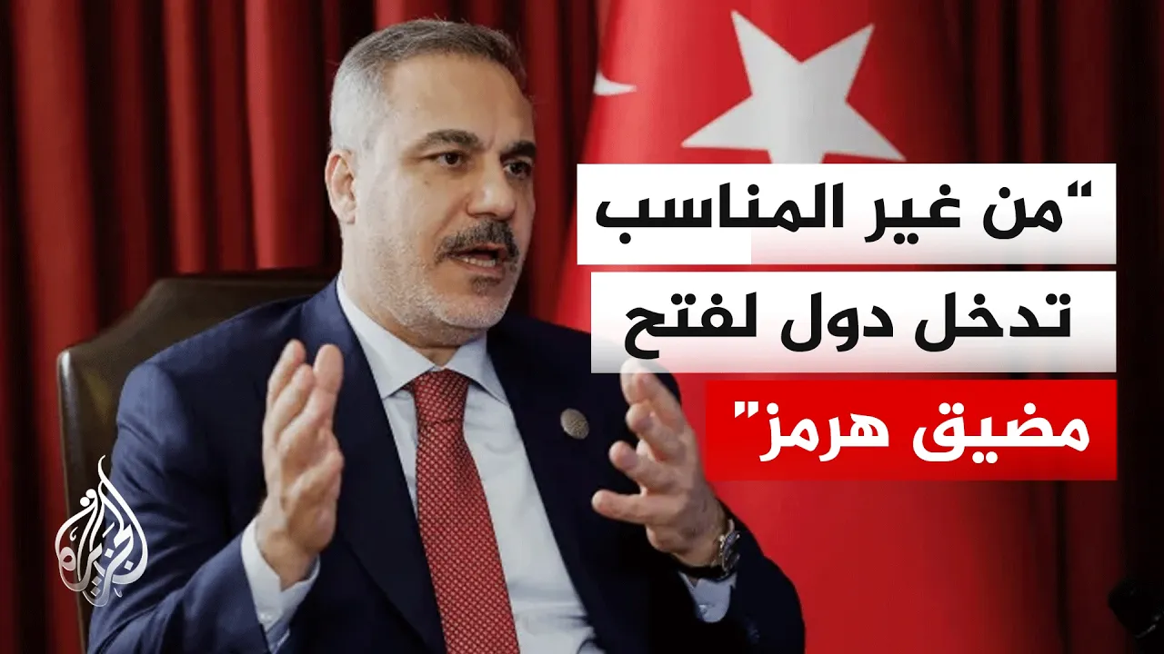 قال وزير الخارجية التركي هاكان فيدان إن حركة العبور في مضيق هرمز يجب ألا تُعرقل، وألا تفرض أي رسوم على المرور عبره. وأضاف أنه من غير المناسب أن تتدخل دول لفتح المضيق، مشيرا إلى أن ما يشهده لبنان هو جزء من السياسات التوسعية الإسرائيلية، وقد يتحول إلى صراع إقليمي.