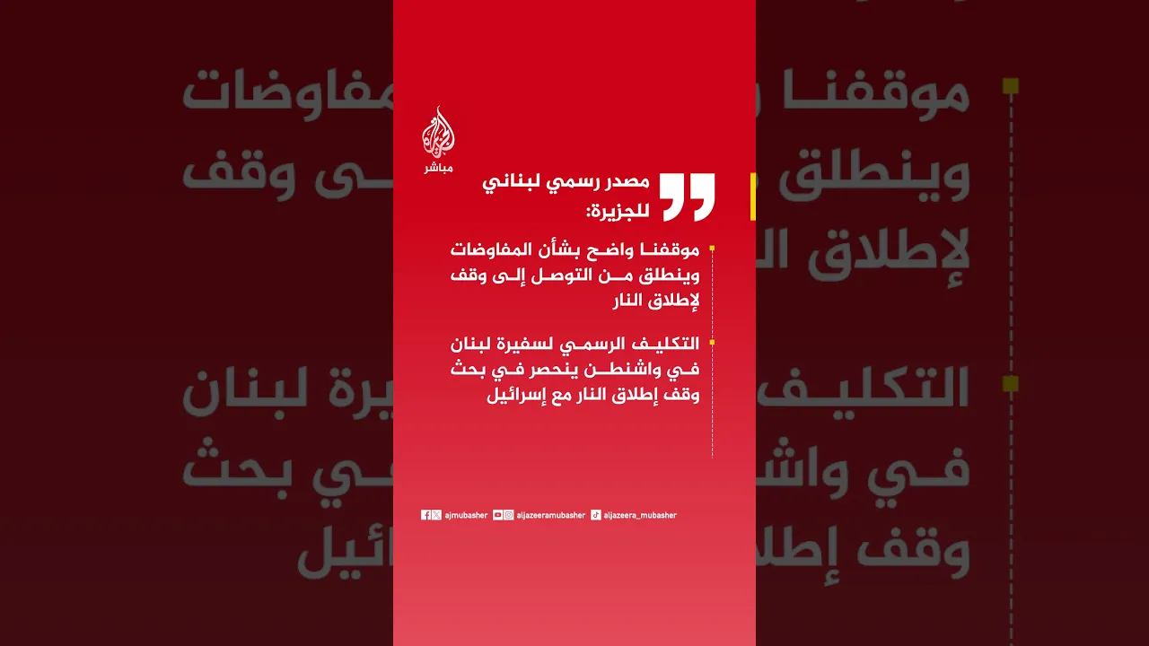عاجل | مصدر رسمي لبناني للجزيرة: