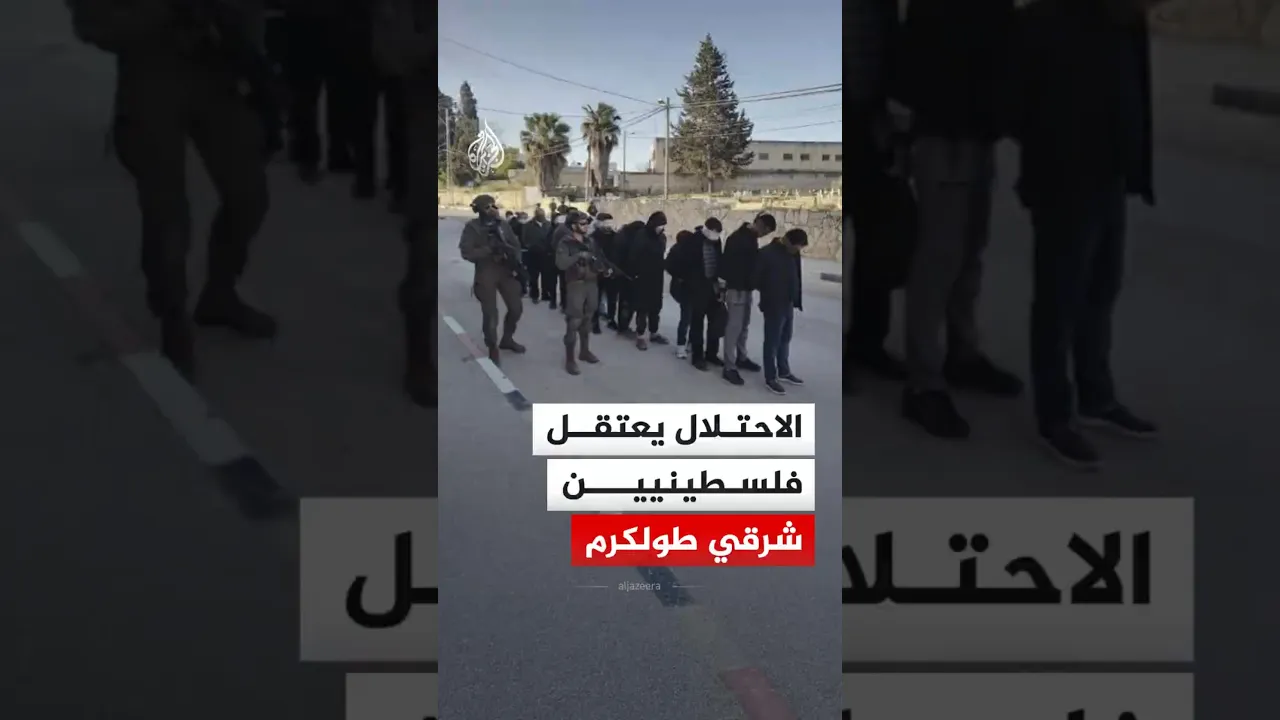 قوات الاحتلال الإسرائيلي تقتاد عددا من الفلسطينيين معصوبي الأعين، الثلاثاء، عقب حملة اعتقالات شنتها في بلدة بلعا شرق طولكرم بالضفة الغربية
