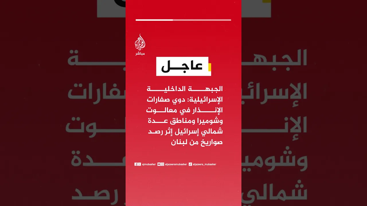 الجبهة الداخلية الإسرائيلية: دوي صفارات الإنذار في معالوت وشوميرا ومناطق عدة شمالي إسرائيل إثر رصد صواريخ من لبنان
