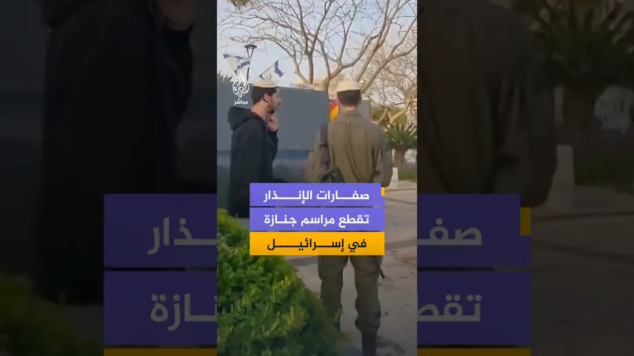 إسرائيليون يقطعون مراسم جنازة بعد دوي صفارات الإنذار في مستوطنة نهاريا شمالي إسرائيل عقب إطلاق صاروخ من لبنان