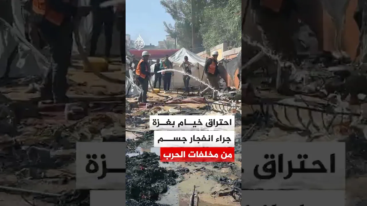 إصابة فلسطيني واحتراق عدد من الخيام جراء انفجار جسم من مخلفات الحرب في غزة