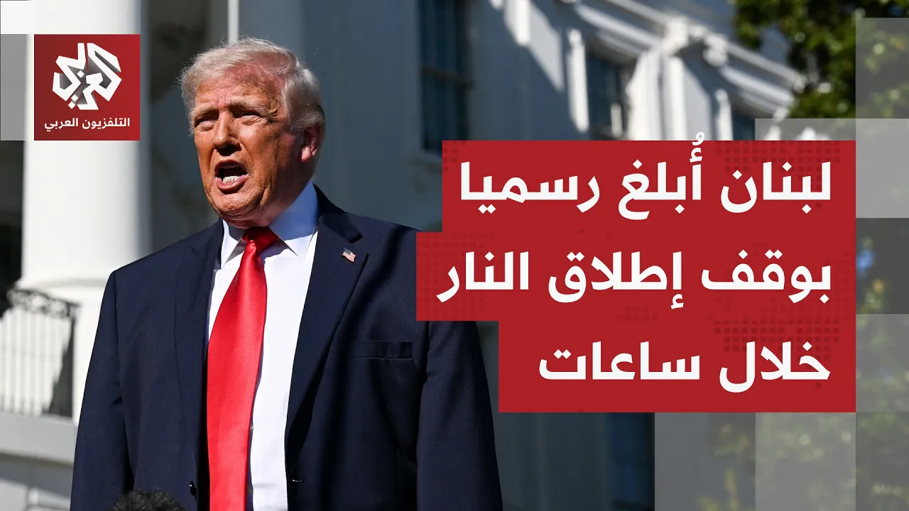 عاجل | مصدر رئاسي للتلفزيون العربي: ترمب أجرى اتصالا بعون ولبنان أبلغ رسميا بقرار وقف إطلاق النار خلال ساعات