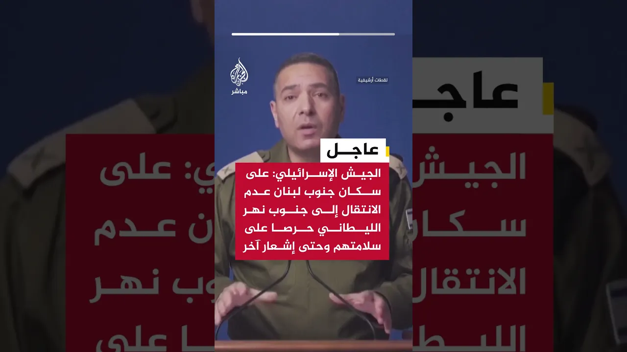الجيش الإسرائيلي: على سكان جنوب لبنان عدم الانتقال إلى جنوب الليطاني حرصا على سلامتهم وحتى إشعار آخر