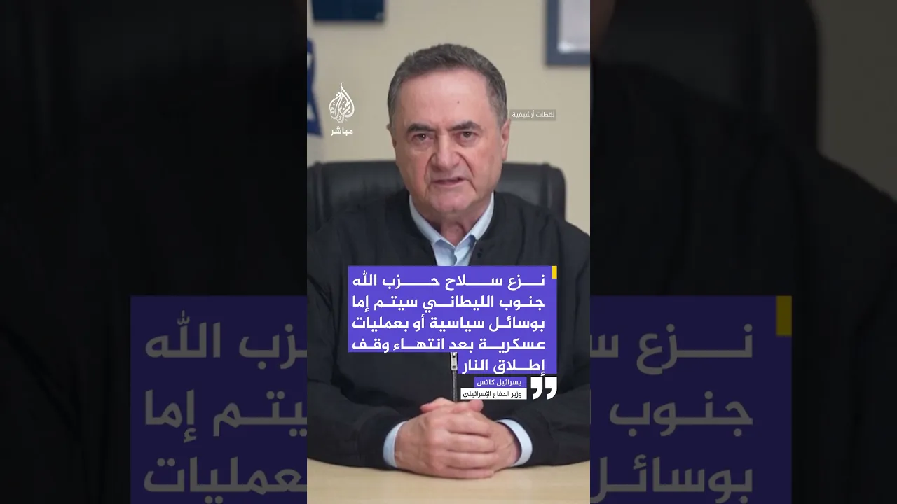 وزير الدفاع الإسرائيلي يسرائيل كاتس: نزع سلاح حزب الله جنوب الليطاني سيتم إما بوسائل سياسية أو بعمليات عسكرية بعد انتهاء وقف إطلاق النار