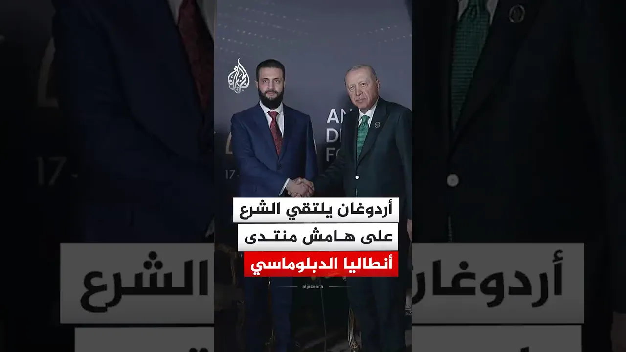 الرئيس التركي رجب طيب أردوغان يلتقي نظيره السوري الرئيس أحمد الشرع على هامش منتدى أنطاليا الدبلوماسي