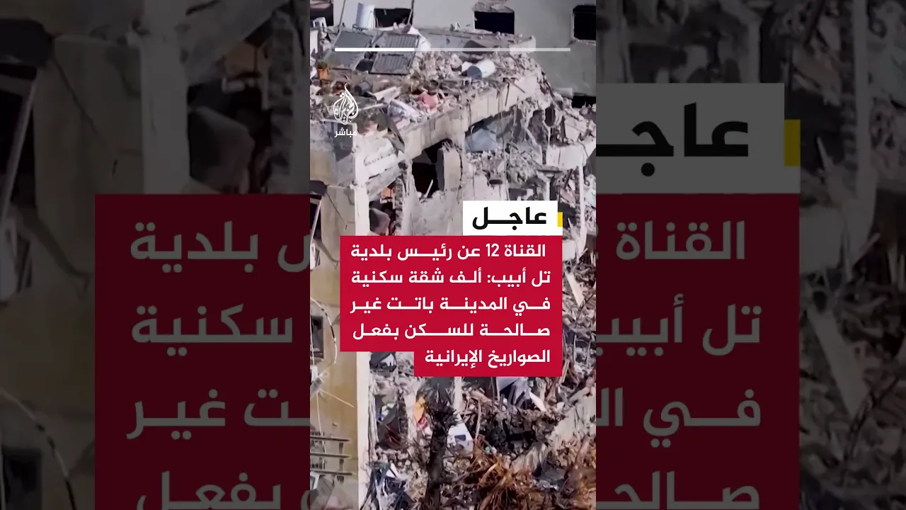 القناة 12 عن رئيس بلدية تل أبيب: ألف شقة سكنية في المدينة باتت غير صالحة للسكن بفعل الصواريخ الإيرانية