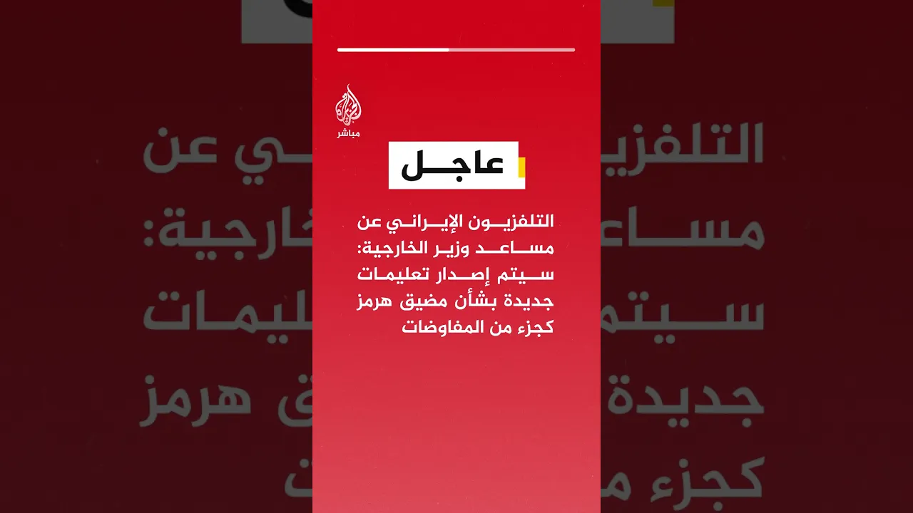 التلفزيون الإيراني عن مساعد وزير الخارجية: سيتم إصدار تعليمات جديدة بشأن مضيق هرمز كجزءمن المفاوضات