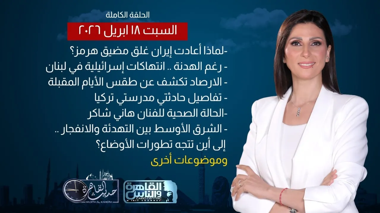 حديث القاهرة مع كريمة عوض| تطورات في لبنان وتركيا وإيران -لماذا أعادت إيران غلق مضيق هرمز؟ -حادثتي مدرستي تركيا - الحالة الصحية لـ هاني شاكر - صورة ترامب مع "المسيح"-الشرق الأوسط بين التهدئة والانفجار .. إلى أين تتجه تطورات الأوضاع؟ .. لقاء مع العميد د. خالد عكاشة | الحلقة الكاملة 18 ابريل 2026