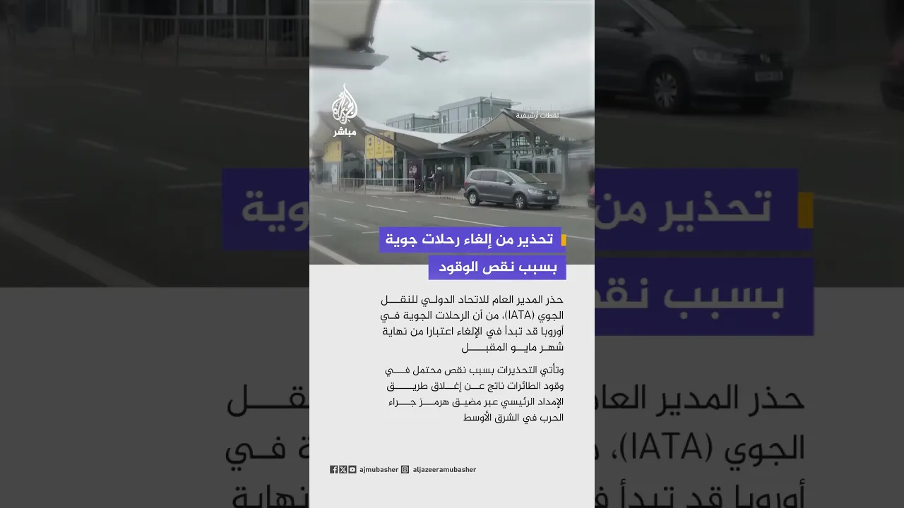 إياتا: وقود الطائرات في #أوروبا يكفي 6 أسابيع فقط، وإغلاق هرمز يهدد بإلغاء رحلات لنقص الوقود