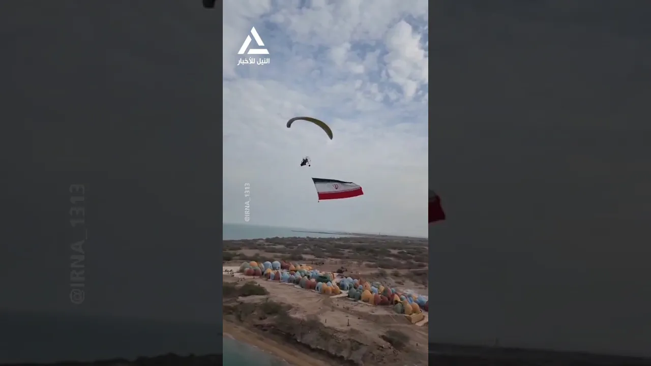 محلقا فوق مضيق هرمز .. إيرانى يرفع علم بلاده