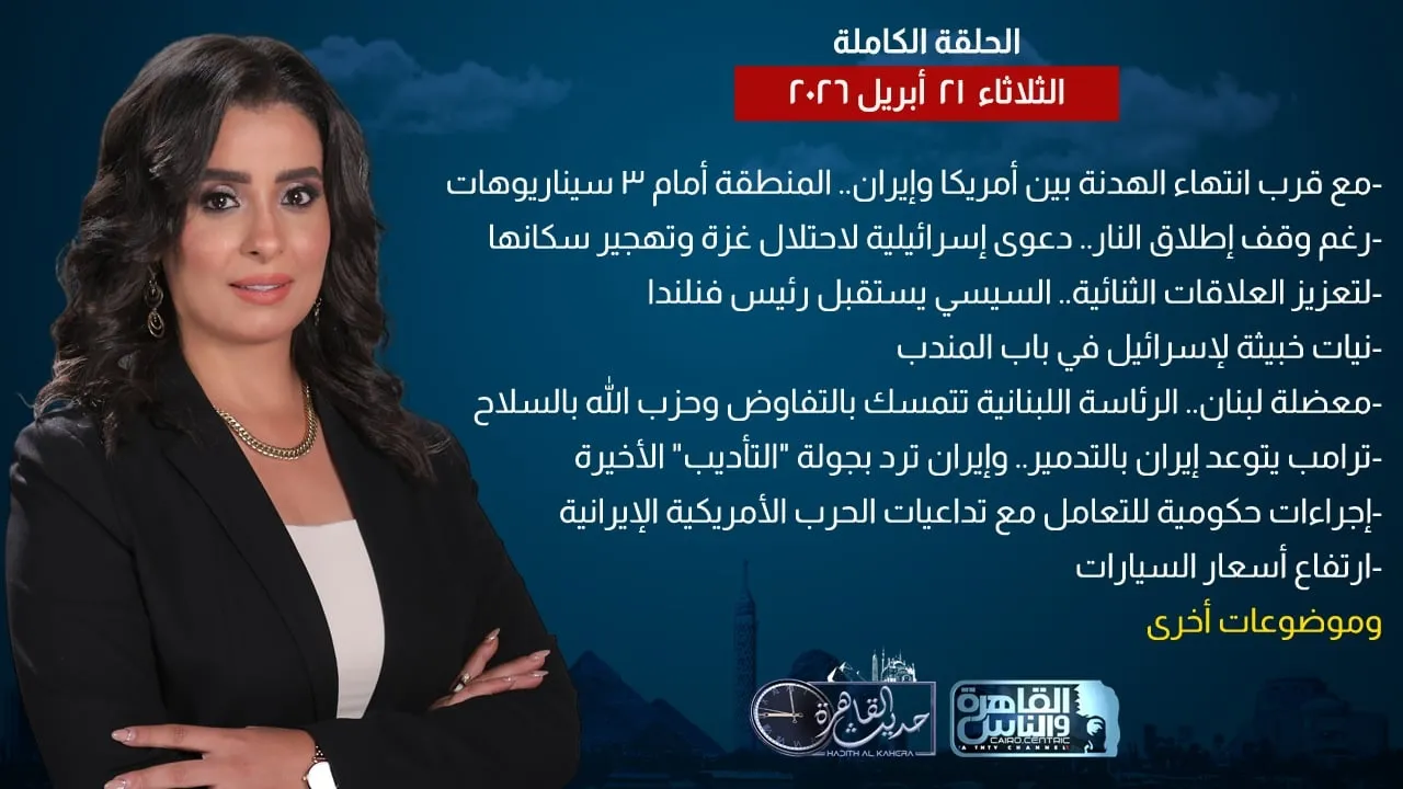 حديث القاهرة| مع قرب انتهاء الهدنة 3 سيناريوهات أمام أمريكا وإيران.. إجراءات استباقية لحماية الاقتصاد| الحلقة الكاملة 21 ابريل 2026