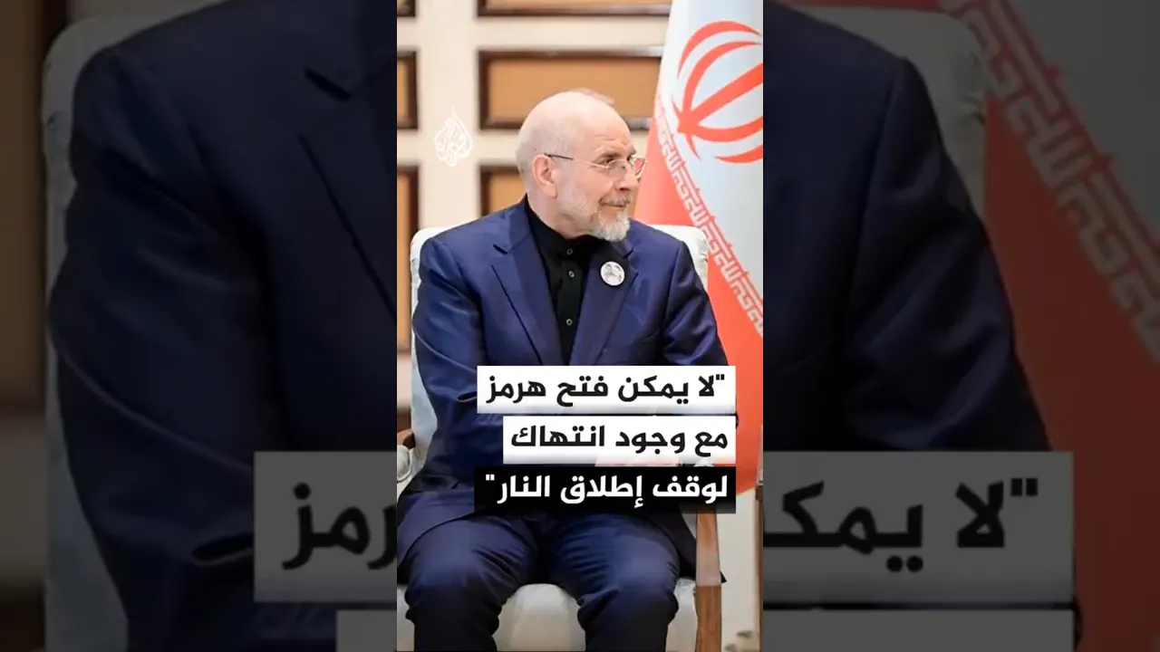 رئيس البرلمان الإيراني محمد باقر قاليباف: لا يمكن إعادة فتح مضيق هرمز مع وجود انتهاك صارخ لوقف إطلاق النار.. التفاصيل مع مراسل الجزيرة عمر هواش