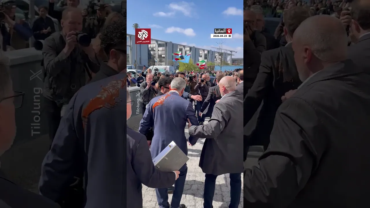 ناشط إيراني يهاجم نجل شاه إيران السابق رضا بهلوي بالطلاء الأحمر عقب مؤتمر صحفي في برلين