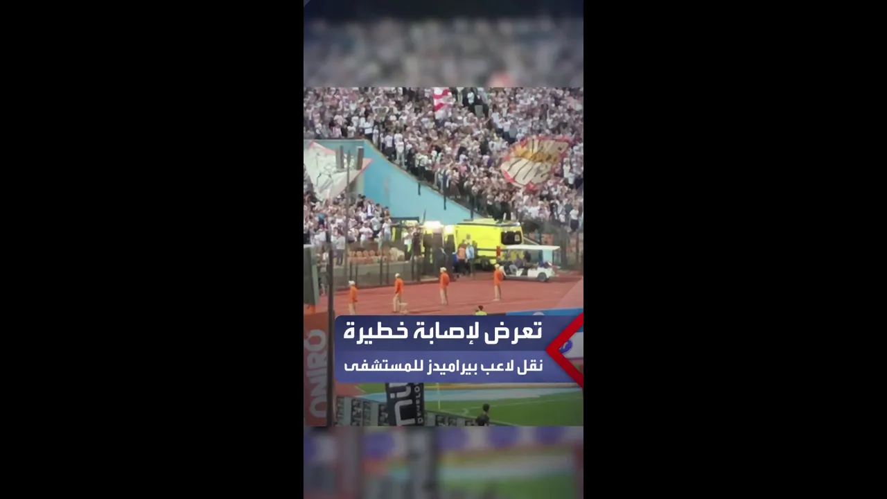 سيارة إسعاف تنقل أحمد عاطف قطة لاعب بيراميدز خلال مواجهة الزمالك إلى مستشفى بجوار استاد القاهرة