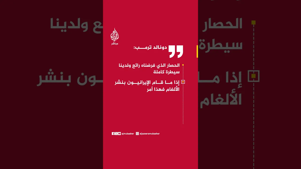 عاجل | ترمب: الحصار الذي فرضناه رائع ولدينا سيطرة كاملة