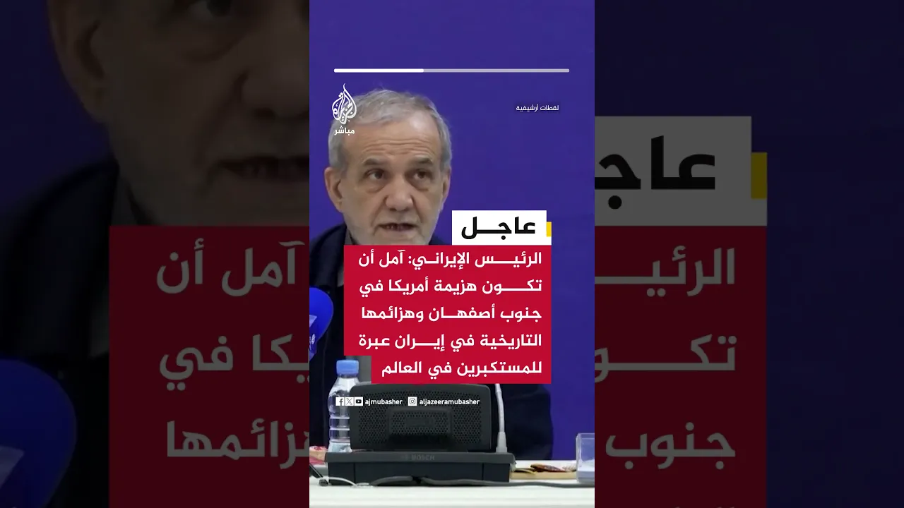 عاجل | الرئيس الإيراني: آمل أن تكون هزيمة أمريكا في جنوب أصفهان وهزائمها التاريخية في إيران عبرة للمستكبرين في العالم