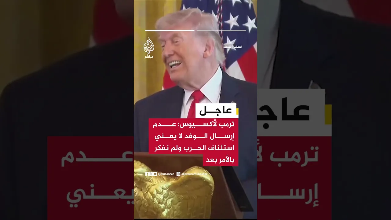 ترمب لأكسيوس: عدم إرسال الوفد لا يعني استئناف الحرب ولم نفكر بالأمر بعد
