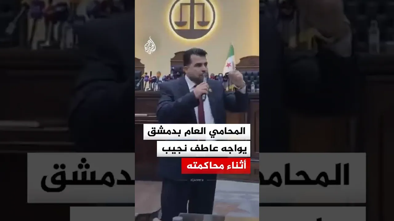 المحامي العام في دمشق حسام خطاب يواجه عاطف نجيب، رئيس فرع الأمن السياسي بمحافظة درعا في عهد النظام السوري المخلوع، وذلك تزامنا مع بدء محاكمته في العاصمة دمشق