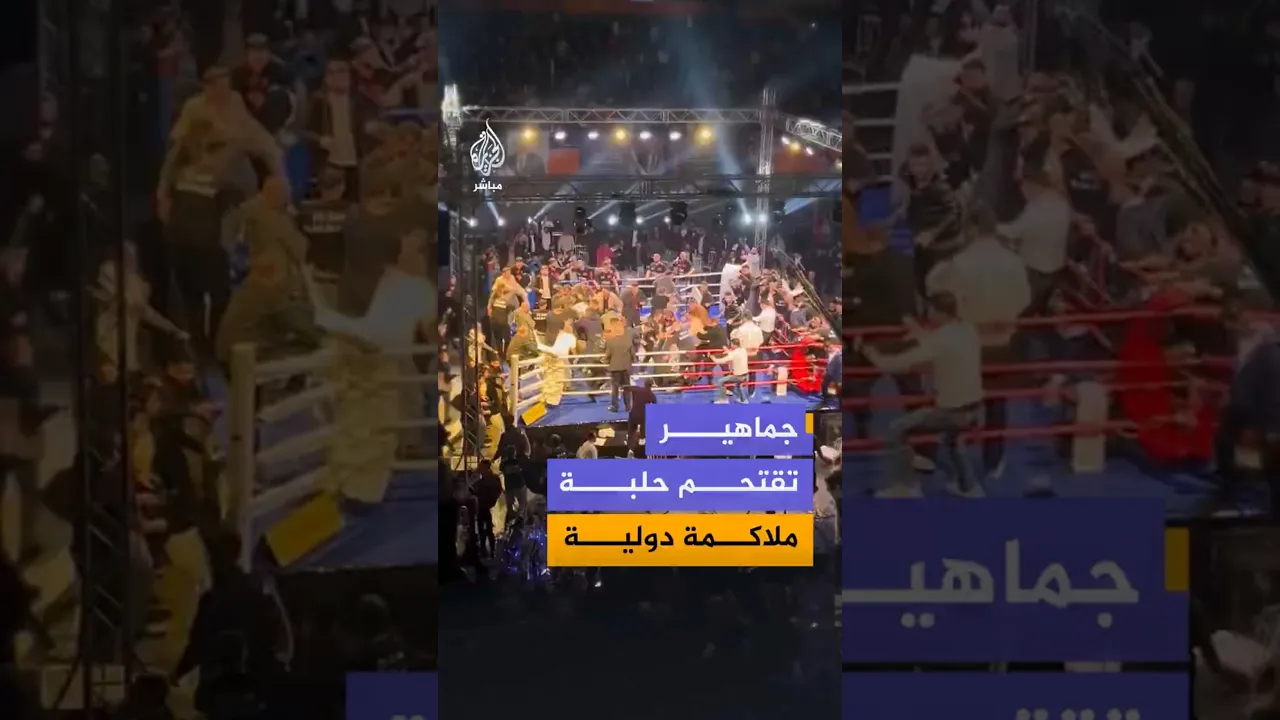 تحولت إلى ساحة عراك عنيف.. جماهير تقتحم حلبة مباراة ملاكمة دولية بين تركي وروسي في طرابزون مما أدى لإلغاء المباراة