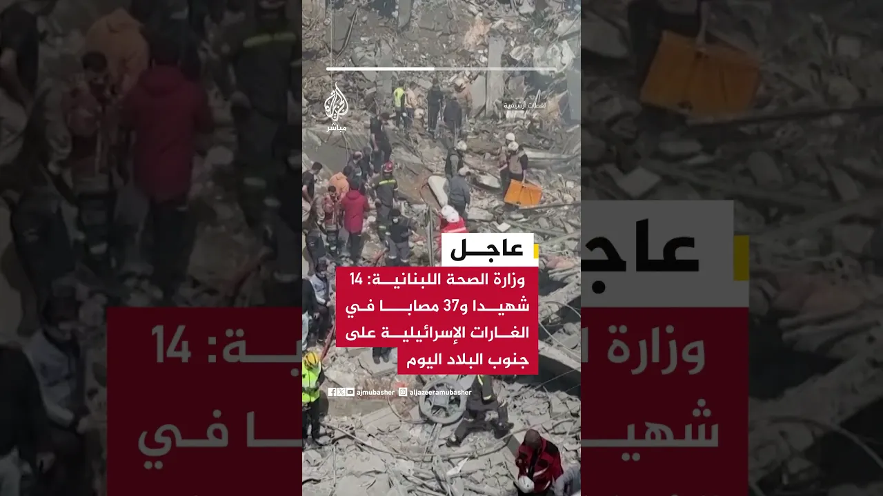 وزارة الصحة اللبنانية: 14 شهيدا و37 مصابا في الغارات الإسرائيلية على جنوب البلاد اليوم