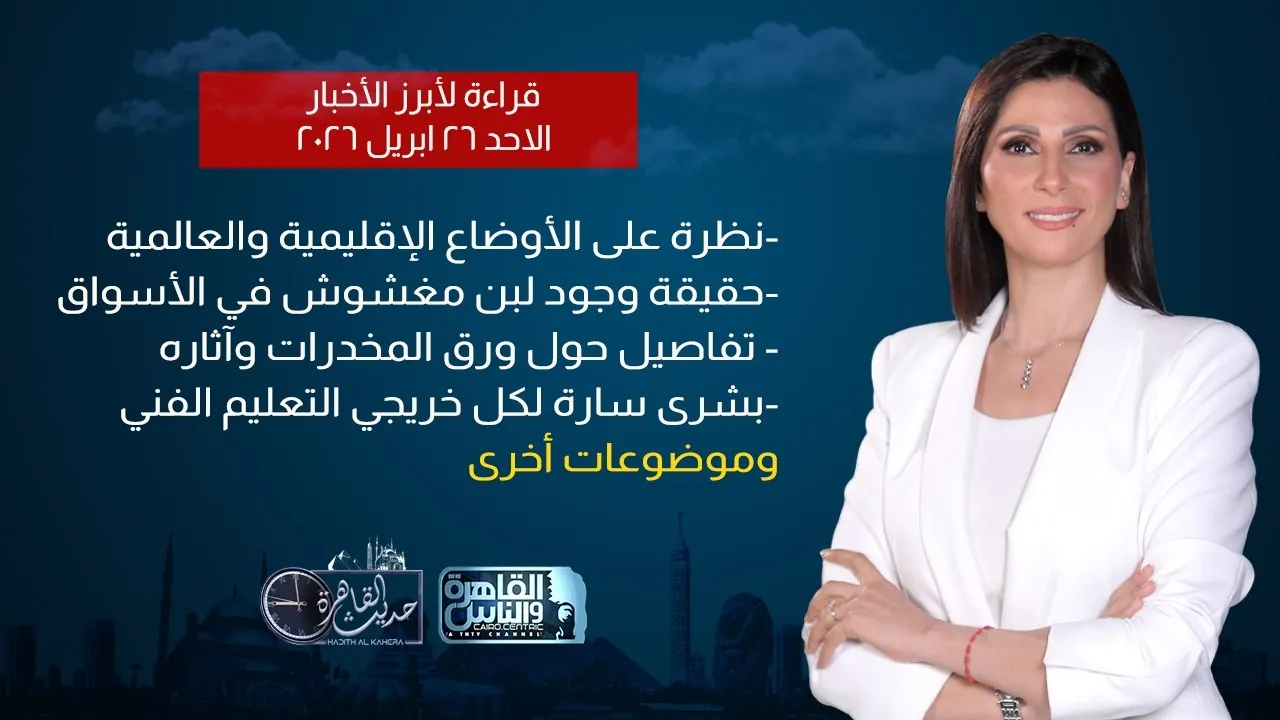 حديث القاهرة مع كريمة عوض| حقيقة وجود لبن مغشوش في الأسواق- بشرى سارة لكل خريجي التعليم الفني-تفاصيل حول ورق مخدرات A4 وآثاره- هل تسعى إسرائيل لحرب أهلية في لبنان؟