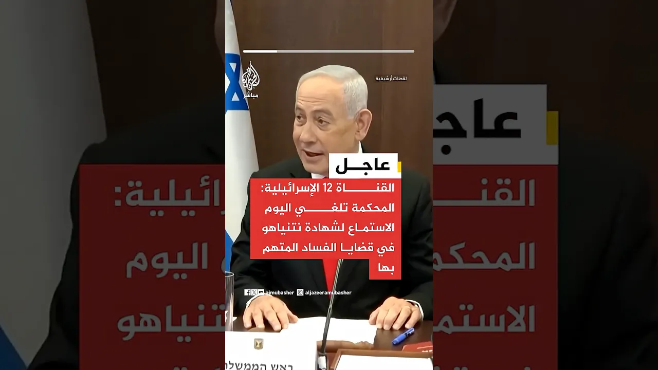 القناة 12 الإسرائيلية: المحكمة تلغي اليوم الاستماع لشهادة نتنياهو في قضايا الفساد المتهم بها بعد تقديم محاميه طلبا بذلك لأسباب أمنية