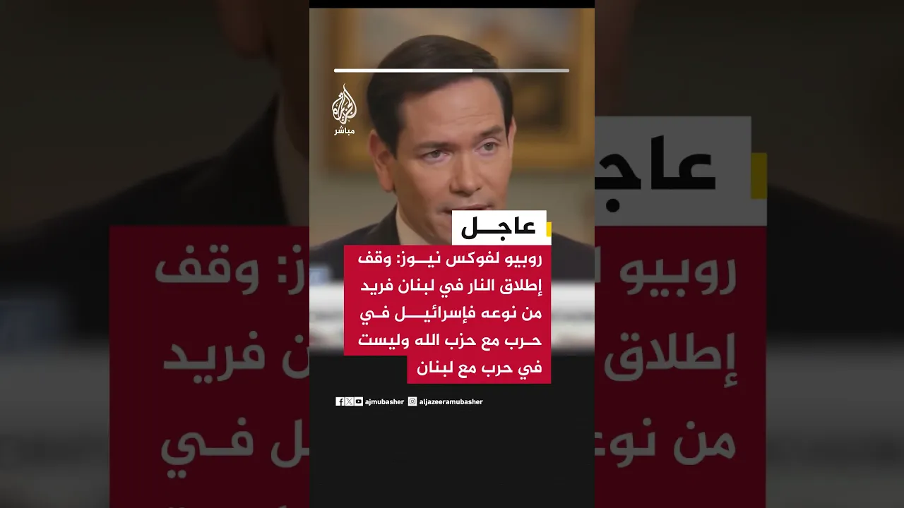 عاجل | روبيو لفوكس نيوز: وقف إطلاق النار في #لبنان فريد من نوعه فإسرائيل في حرب مع #حزب_الله وليست في حرب مع #لبنان