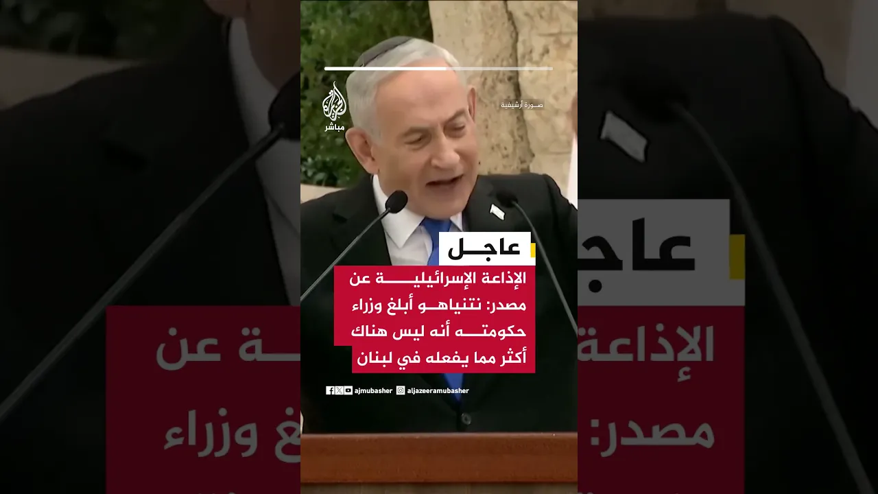 الإذاعة الإسرائيلية عن مصدر: نتنياهو أبلغ وزراء حكومته أنه ليس هناك أكثر مما يفعله في لبنان