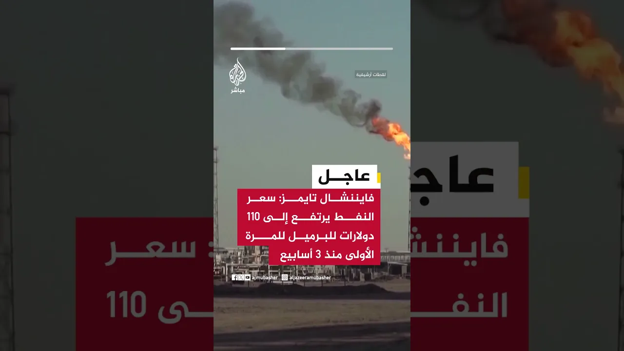 عاجل | فايننشال تايمز: سعر النفط يرتفع إلى 110 دولارات للبرميل للمرة الأولى منذ 3 أسابيع