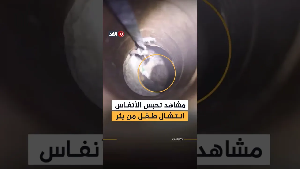 لحظة إنقاذ طفل سوري سقط في بئر ارتوازية عمقها نحو 18 مترا في بلدة شمارخ بريف حلب