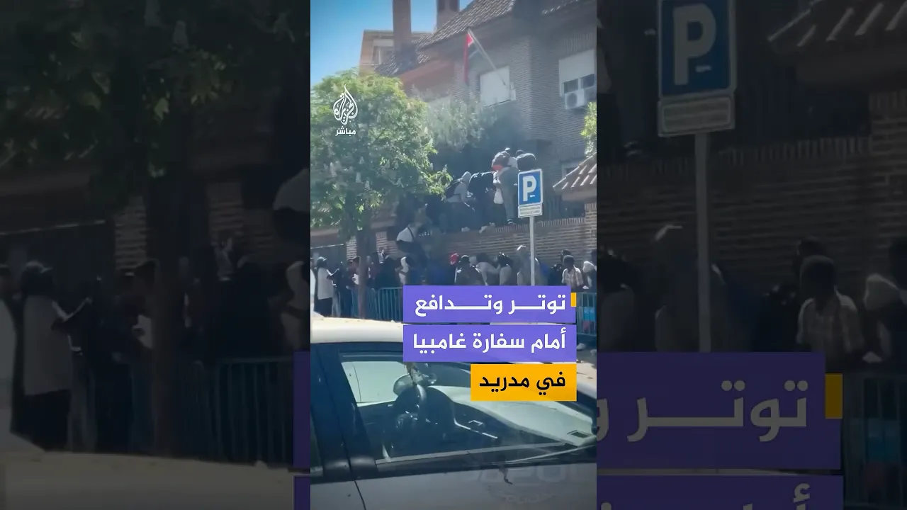 ازدحام أمام سفارة #غامبيا في #مدريد، في ظل تزايد أعداد المهاجرين المتقدمين ضمن إجراءات تسوية الأوضاع القانونية التي تشهدها #إسبانيا مؤخراً.