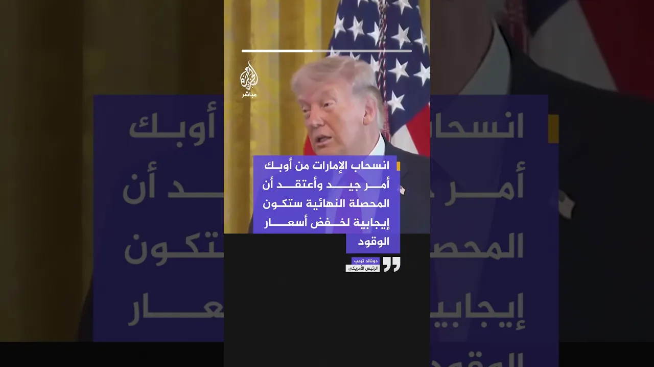 ترمب: انسحاب الإمارات من أوبك أمر جيد وأعتقد أن المحصلة النهائية ستكون إيجابية لخفض أسعار الوقود
